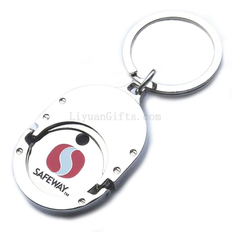 This trolley coin keychain is made of high quality zinc alloy, die cast and filled with hard enamel on two sides for custom logo. Promotional trolley coin keychains are very handy items, especially when there are no coins to use when on the weekly shop. Every time your client reaches for a trolley, be certain that they are also reaching for your trolley coin that’s branded with your slogan or logo! The innovative custom trolley coin keychain has rocketed to the top of our best selling charts. Ideal for use in supermarkets, trade stores or gyms, in fact anywhere you need a pound coin. Your design can be stamped in up to 4 colours on either one or two sides for added impact, your customers will never get caught short again!