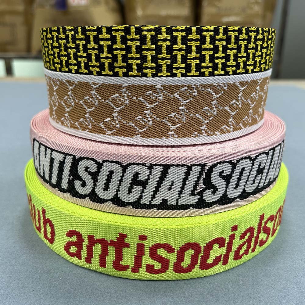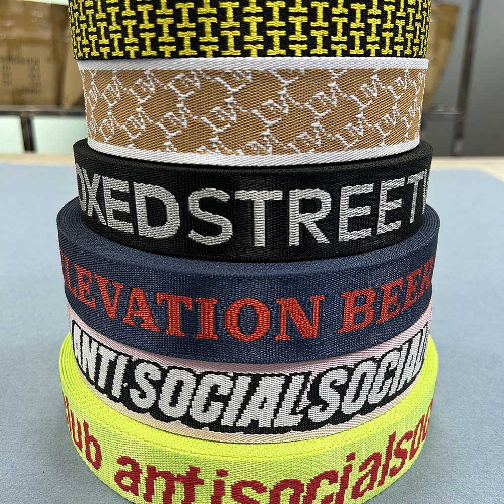 Tags: Wholesale Heavy Duty Jacquard Printed 38mm 50mm Nylon Webbing Straps with Custom Logo for Shoe Use Bags & Belts