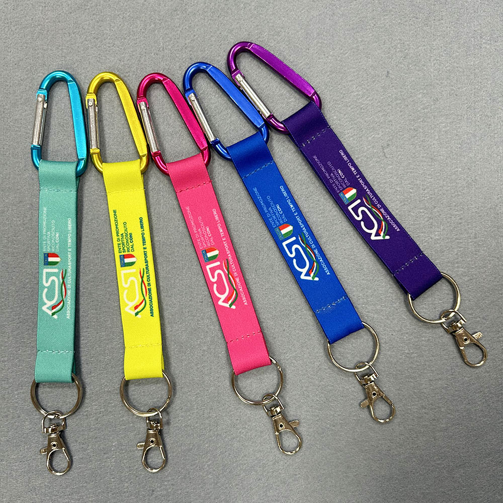 Tags: Wholesale High Quality Carabiner Keyring 3D Silk Printed Wrist Strap Custom Short Lanyard Keychain