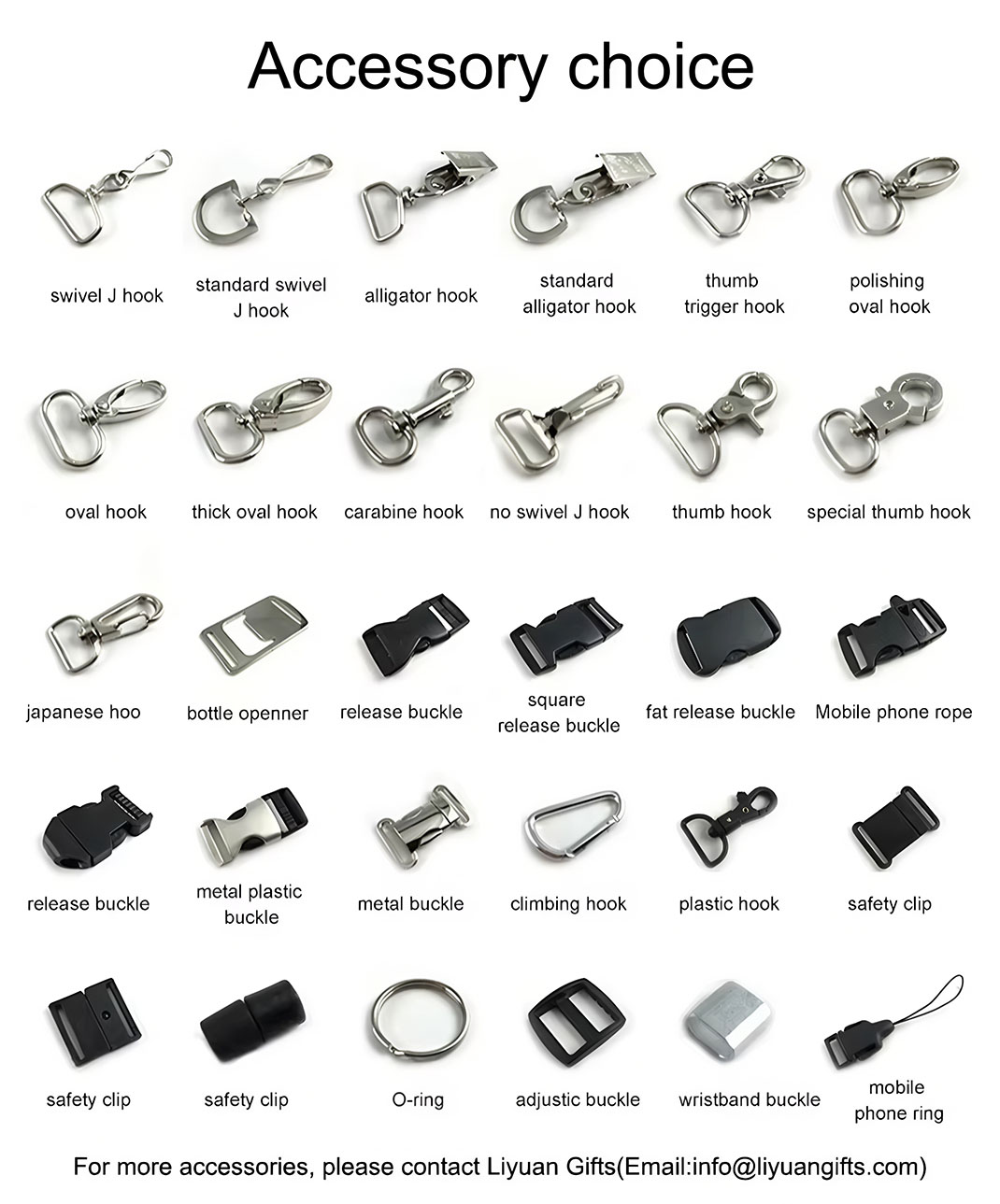 | Accessories | Carabiner, PVC label, Aluminum patch, Metal hook, Lobster claw, oval hook, key ring, Bulldog clip, Release buckle, Adjustor, Safety clip, Crimp, Pull reel, J hook, Cell phone loop, ID card holder etc. |